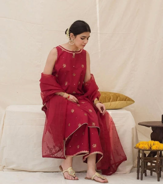 🌸 Elegant Charm, All Year Round Introducing Dilara– a beautifully crafted 3-piece dress designed to keep your style fresh and graceful. Made from breathable yet premium-quality lawn fabric, this outfit features delicate embroidery that adds just the right touch of sophistication. Available in both full-sleeve and sleeveless stitched options, it’s perfect for indoors or transitional weather — giving you comfort without compromising on charm.
