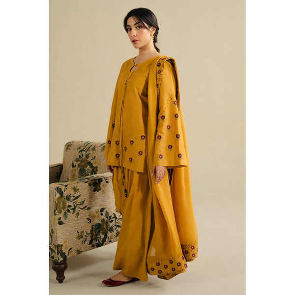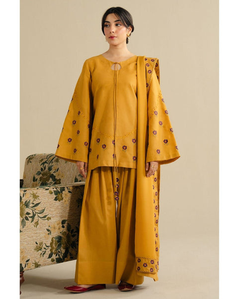 💛 Grace in Every Thread Channel effortless elegance with Gulrosh– a mustard-toned 3-piece set available in both stitched and unstitched options. Crafted from breathable premium lawn, the shirt features intricate embroidery on the front and sleeves. The look is completed with a graceful farshi shalwar and a delicate organza dupatta, framed with four-sided embroidered borders for a timeless finish.