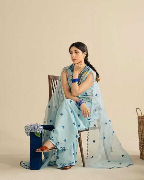 🌿 Breathe Easy This Summer! Introducing Nayab – a perfect fusion of tradition and trend. This 3-piece lawn ensemble showcases a beautifully printed shirt enhanced with intricate embroidered work on the daman and neckline. The look is elevated with an all-over embroidered plazo-style farshi shalwar, bringing volume and grace to your outfit. Completing the attire is a delicate organza dupatta, embellished with elegant embroidery, making Nayab a true summer statement of sophistication.