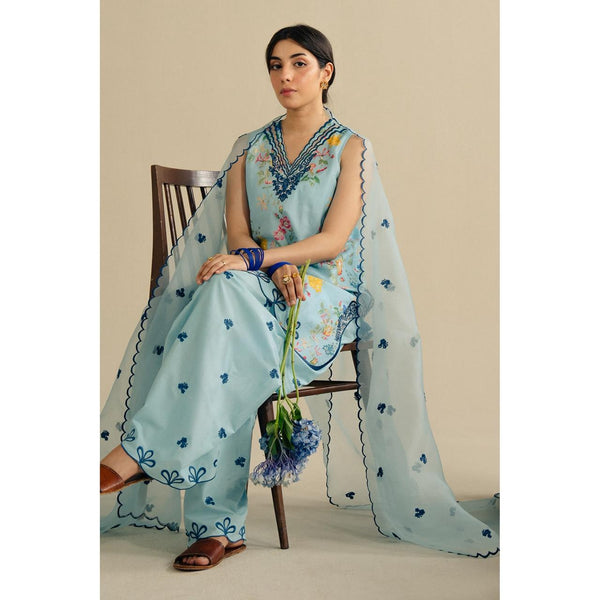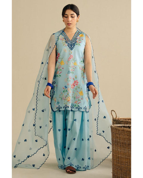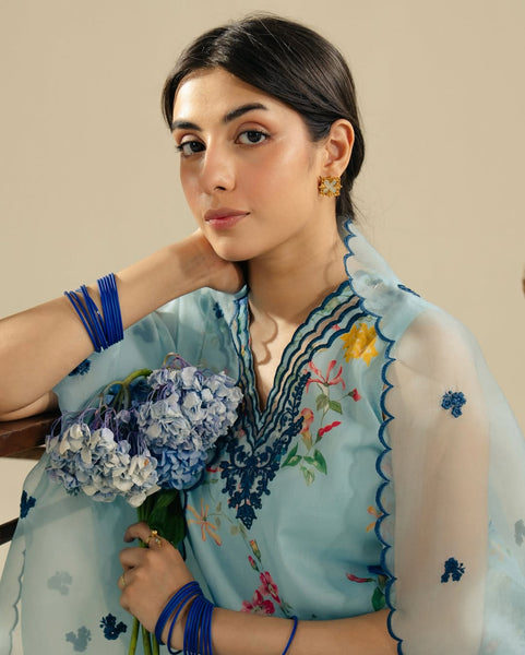 ✨ Why You’ll Love It: – Summer-friendly Premium Lawn Fabric – Printed Shirt with Embroidered Neckline & Daman – Fully Embroidered Plazo-Style Farshi Shalwar – Organza Dupatta with Intricate Embroidery – Available in Both Stitched & Unstitched